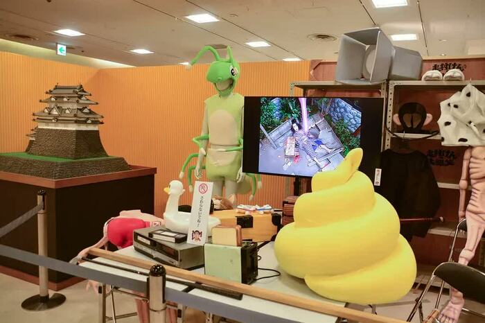 展示エリアにはコントの小道具や衣裳、そして実際にコントを体験できる“映え”フォトスポットも。小道具が使用されたコントを懐かしく思い出しながら、細部までをも観察できる絶好のチャンスだ。そして、壁際にはこれまたお馴染みのコントの衣裳がズラリと並んでいる。