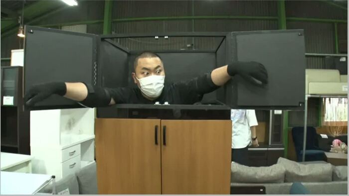 大型リサイクルショップの店内から、お客さんにバレることなく脱出を図るミッション「棚に隠れて脱出せよ!」では、ぺこぱ、ハナコの2組がチャレンジ。