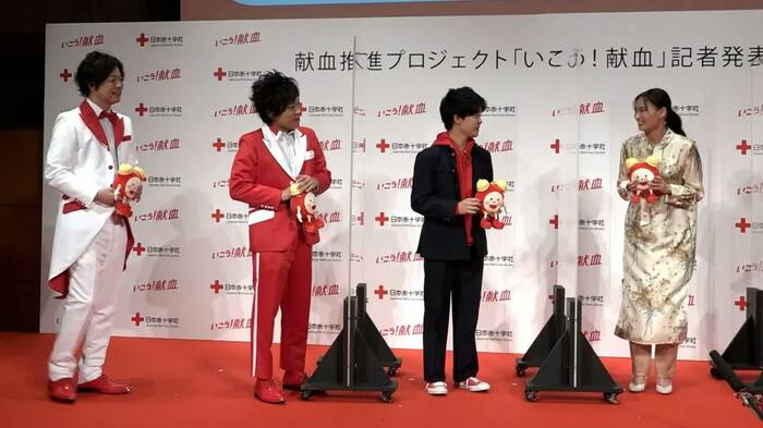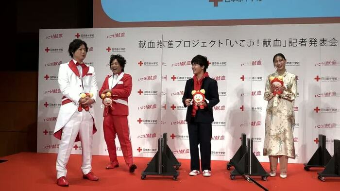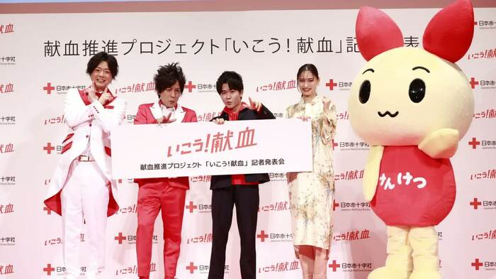 10月6日(水)、日本赤十字社の献血推進プロジェクト「いこう!献血」記者発表会が行われ、イメージキャラクターのぺこぱ、鈴木福、大政絢が登壇した。