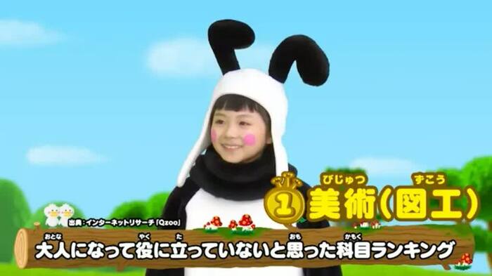 ランキングの3位は算数(数学)、2位は理科と発表されると、じゃじゃじゃは「理科は役に立つでしょ!」と物申し、「僕は理科の授業で風とかゴムの働きを学んでいて(そういう知識は大人になっても役立つと思う)」と続けた。
