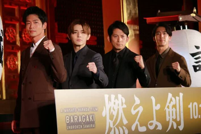 9月24日(金)、映画「燃えよ剣」の公開直前イベントが上野東照宮 神楽殿の前で行われ、主演の岡田准一、山田涼介、尾上右近、松下洸平が登壇した。