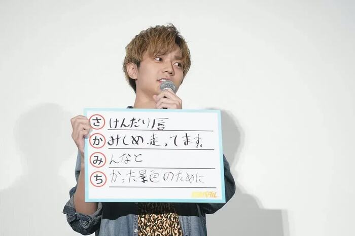 さらに、お互いのあふれる“弱ペダ愛”をあいうえお作文で表現することに。テーマは「さ・か・み・ち」。司会者から、2人のうちどちらが良かったかを会場のお客さんに決めてもらうことが明かされると、永瀬は「先日の川柳対決で痛い目を見ているので…仲良くいきません?」と後ろ向きなコメントを。