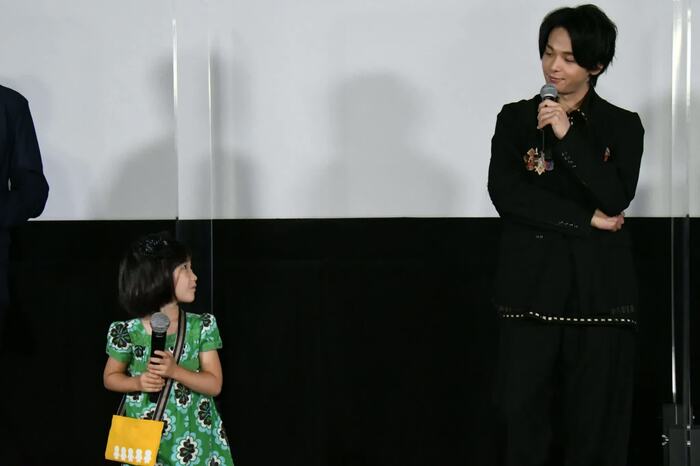 吉田は「こんにちわ。末永モモ役の吉田萌果です。5歳です。好きな色は桃色です。よろしくお願いいたします」と挨拶。すると中村が声真似をして「将来はお金持ちになります」とコメント。これに対しすかさず監督が「映画に出資してね」とやりとりする場面も。