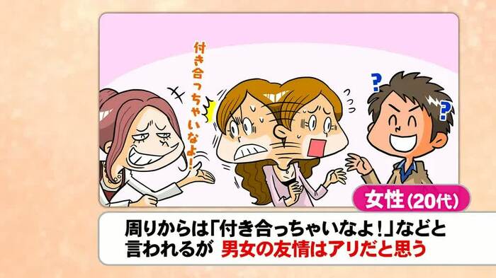 三上アナも「異性の友達はありえないという人の気持ちが理解できない」と主張し、SNSにも「男女の友情はアリ!」「異性の友人がいないからうらやましい」などの意見が見られた。