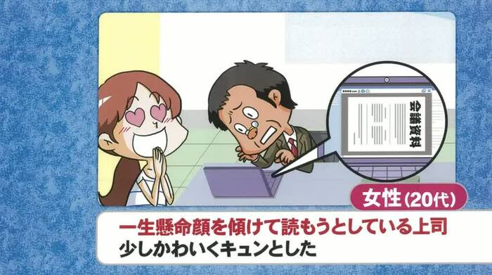 「PCに送られてきた会議資料の向きが間違っていたのに、上司がそのまま頭を傾けて読んでいてキュンとした」(20代女性)という“おじキュン”(※おじさんの言動にキュンとすること)エピソードでは、「そんなおじさんにキュンとするか?」を、視聴者に意見を募る「せきらら投票」で問いかけた。