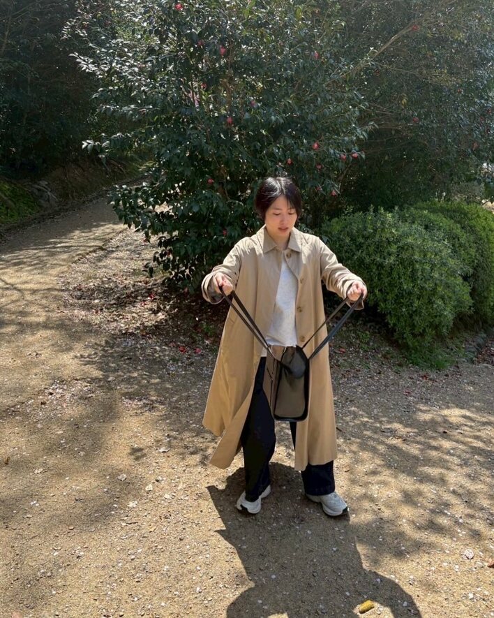 公開された写真を見ると、ベージュのロングコートを着た志田さんが、少し大きめのカバンの持ち手を両手でしっかりと持ち、カバンを広げて立っている姿が。