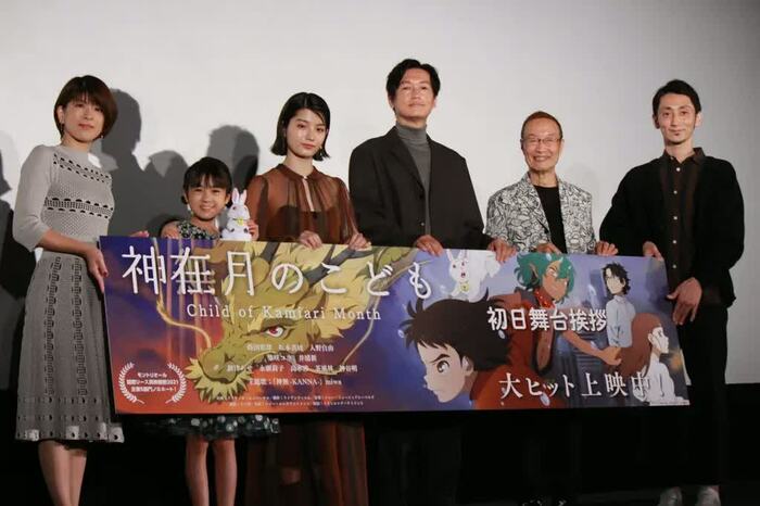 10月8日(金)、アニメーション映画「神在月のこども」の初日舞台挨拶が行われ、声優を務めた蒔田彩珠、井浦新、新津ちせ、神谷明と、白井孝奈(アニメーション監督)、四戸俊成(原作・コミュニケーション監督)が登壇した。