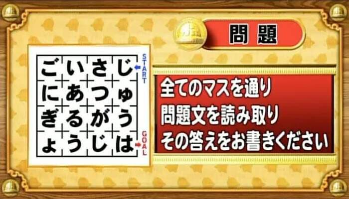最初は「脳ミングアップクイズ」から、迷路クイズ。すべてのマスを通って問題文を読み取り、その答えを導き出してください。