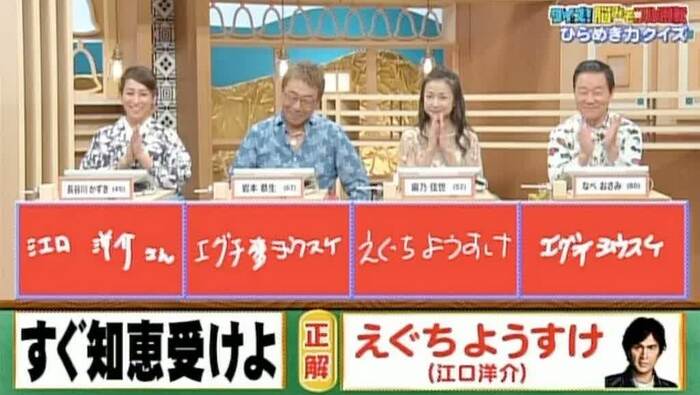 正解は「えぐちようすけ(江口洋介)」。見事全員正解!