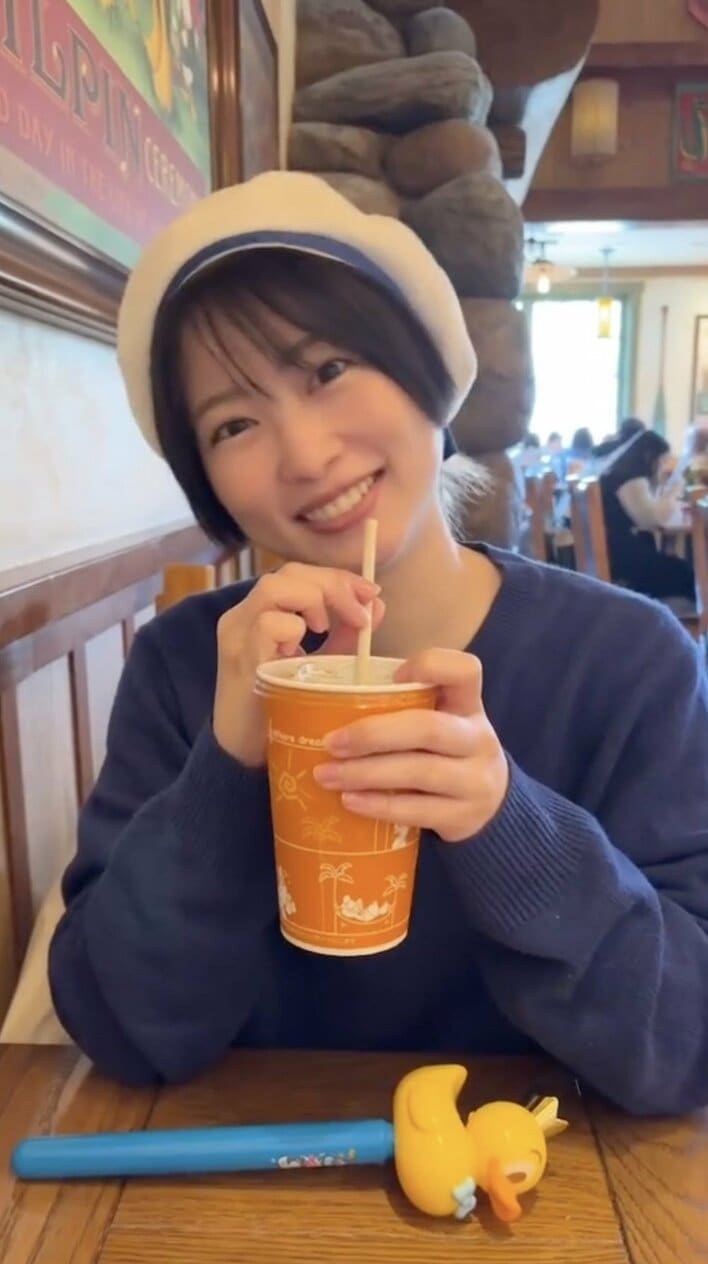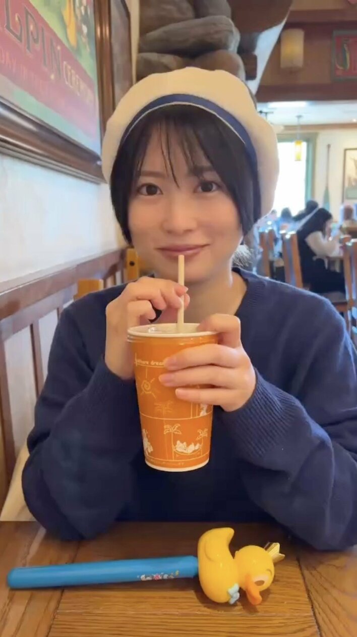 12日にアップされた動画では、ドナルドをイメージしたベレー帽をかぶる志田さんの姿が。ドリンクを持ち、カメラを見つめているかと思いきや…。