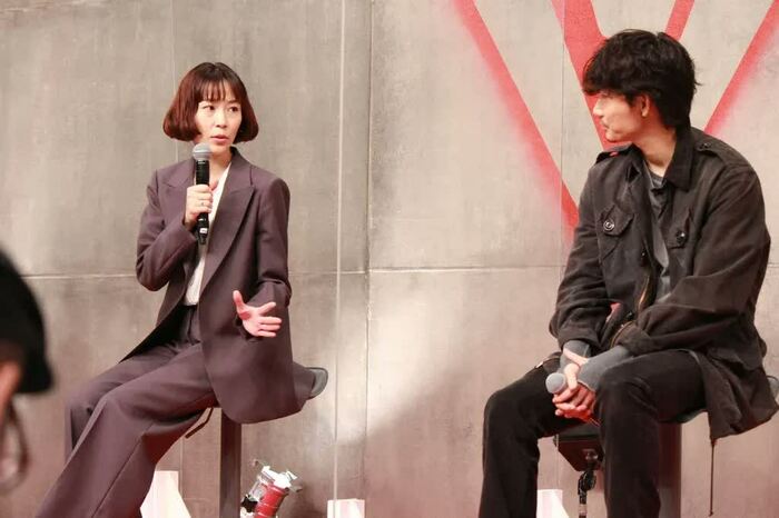 「今回の現場での座長・綾野剛について」聞かれると、福士は「昨日の撮影も、綾野さんがフェニックスモード(ずっと撮影していられる状態)で大変でしたよ(笑)。綾野さんに関して思うのは、1分1秒ごとにアイデアが思い浮かぶとおっしゃっていて、それが素敵だなと。本当にずっとこの作品のことを考えているんだなと感じました。実際にシーンごとに『ここをもっとこうしよう』とアイデアを出されるので、この作品への愛が伝わってきます」と回答。