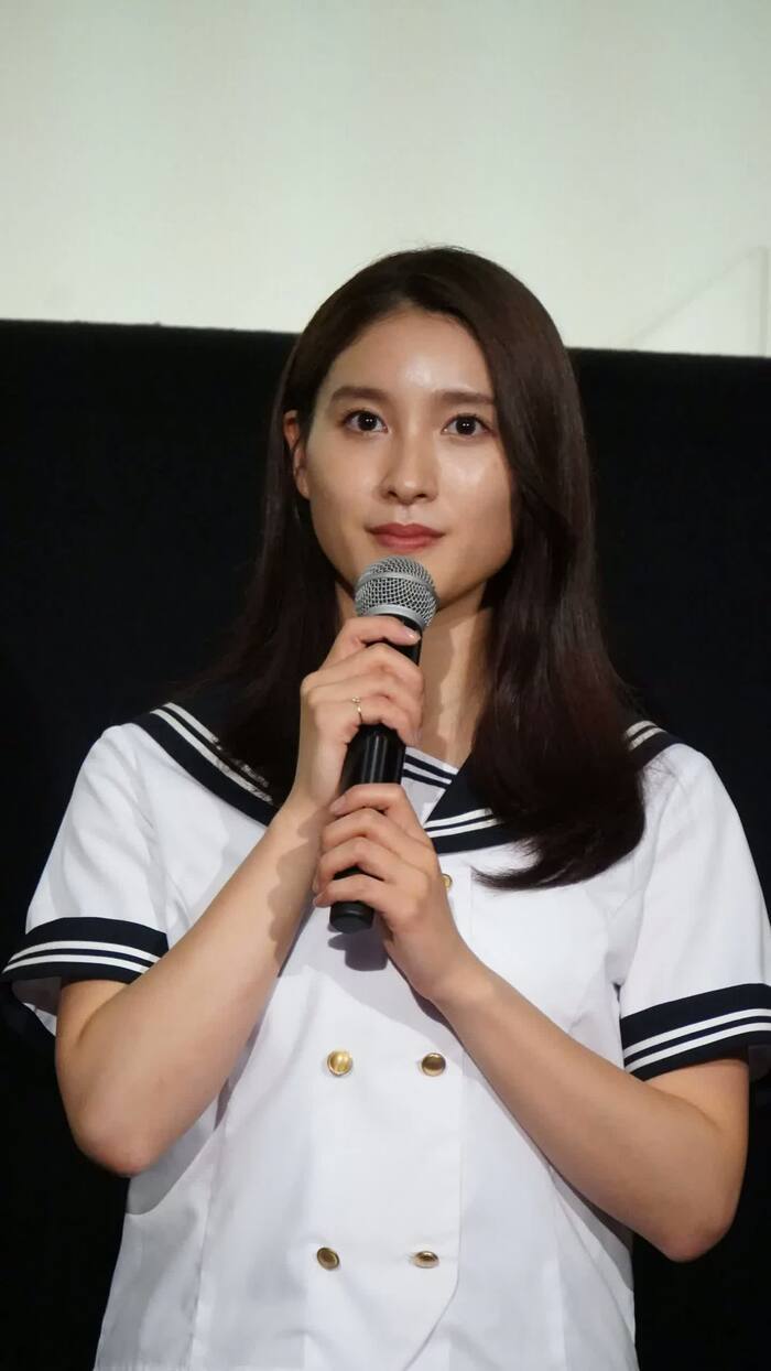 今回の衣装については「現在26歳になるんですけど、“シオンリスペクト”ということで(制服の)衣装を選びました。(女優としては)2年前に高校生役を卒業させていただいたんですけど、今日はファンクラブということで、たくさんファンの方々に笑顔を届けたいと思い、制服を着ました」と説明。