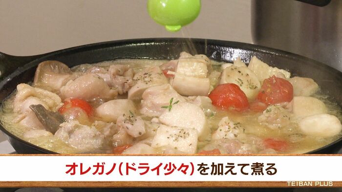 10分ほど煮込んだら、タイム4本、オレガノ少々を加えてひと煮立ちさせて完成です!