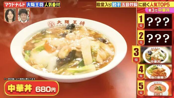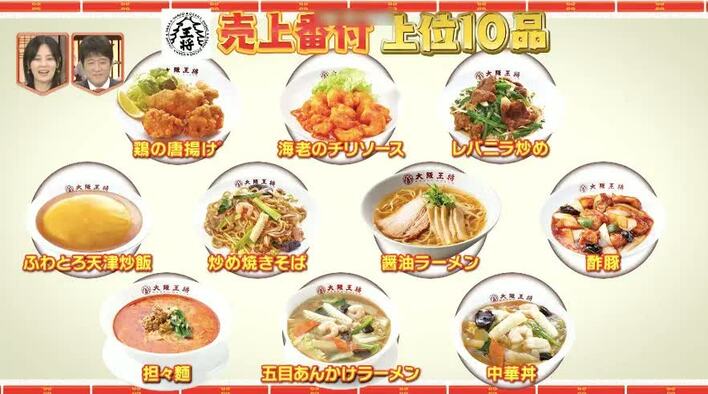 10月13日(水)放送の『林修のニッポンドリル マクドナルド&大阪王将!人気番付SP』では、創業52年の中華料理チェーン「大阪王将」の売上番付を発表。