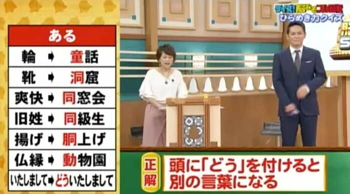 正解は「頭に『どう』を付けると別の言葉になる」。