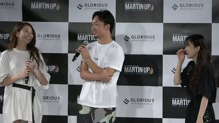 9月1日(火)、総合格闘家の朝倉未来がプロデュースしたサプリメント「MARTIN-UP」新製品発表会が行われ、朝倉とゲストの重盛さと美、希帆が登壇した。