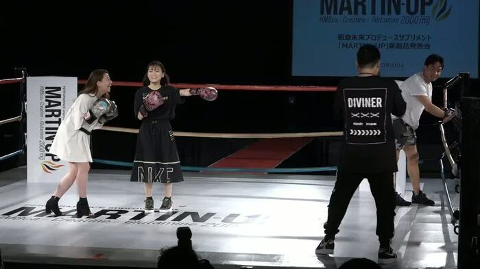 イベントの中盤では、YouTuberとしても活躍する朝倉による公開収録が行われ「サプリのプロデュース権」をかけて、3人でスパーリングを行うことに…。