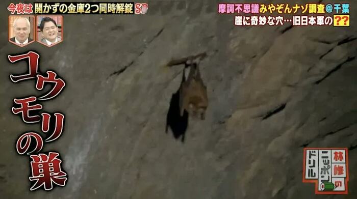 急な階段を登って、みやぞんは明かりの届かない洞窟内へ。すると、洞窟内で古びた車輪やヘルメットの残骸を発見。そして、暗さと大量の虫に怯えながらみやぞんが歩みを進めると、洞窟の奥にはコウモリの巣が…!