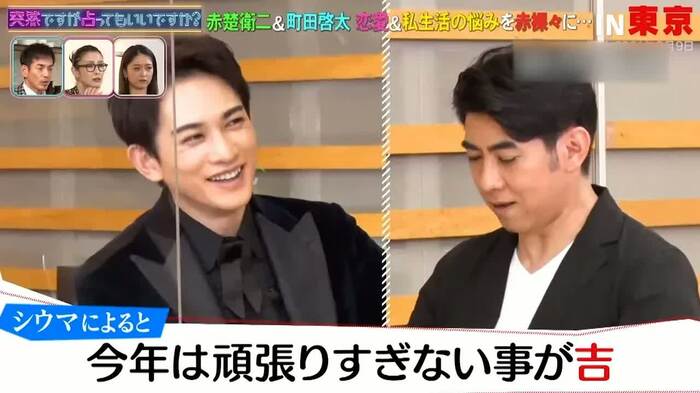 赤楚衛二と町田啓太が、フジテレビ『突然ですが占ってもいいですか?』で占い師のシウマと対面。その驚異の的中率に、赤楚と町田が動揺する一幕があった。