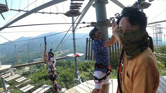 ステーキ店でハワイ気分と贅を尽くした料理を味わった面々が次に向かったのは、ある人気アナウンサーがすすめる“アジア初上陸”のアトラクションが楽しめるアスレチック施設。