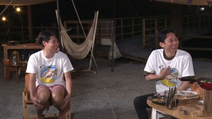 すっかり童心に返った有吉が、みちょぱや丸山を相手に悪ノリを始めると、「あの人最低!」と言いながら女性陣も応戦し大盛り上がり。はしゃぎ疲れたあとは、優雅なグランピングタイムへと移った。
