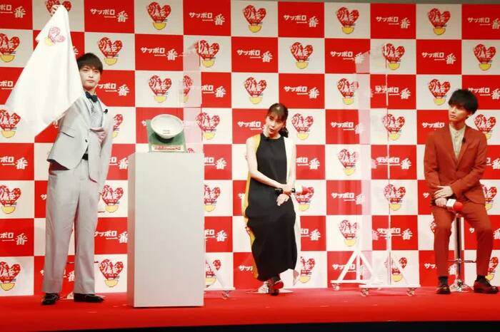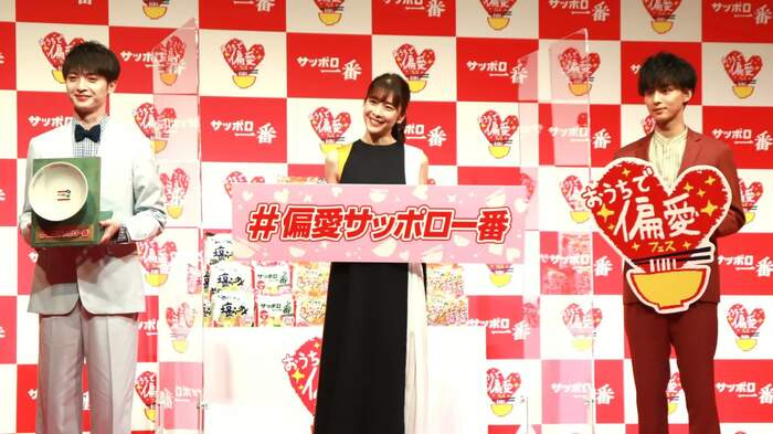 サンヨー食品の即席麺「サッポロ一番」の「おうちで偏愛フェス」キャンペーン開始式が9月1日(火)、都内で開催され、CMキャラクターを務める竹内結子、藤ヶ谷太輔、玉森裕太が登壇した。