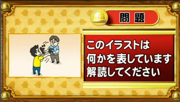 最後は、イラスト暗号の問題。次のイラストが表しているものを解読せよ。