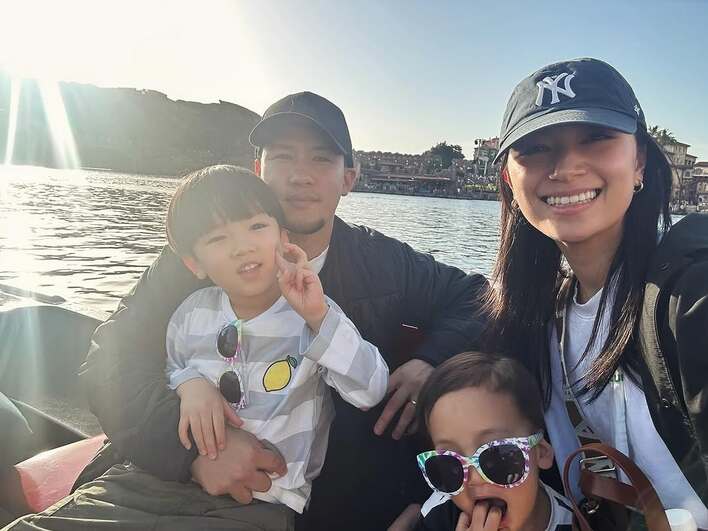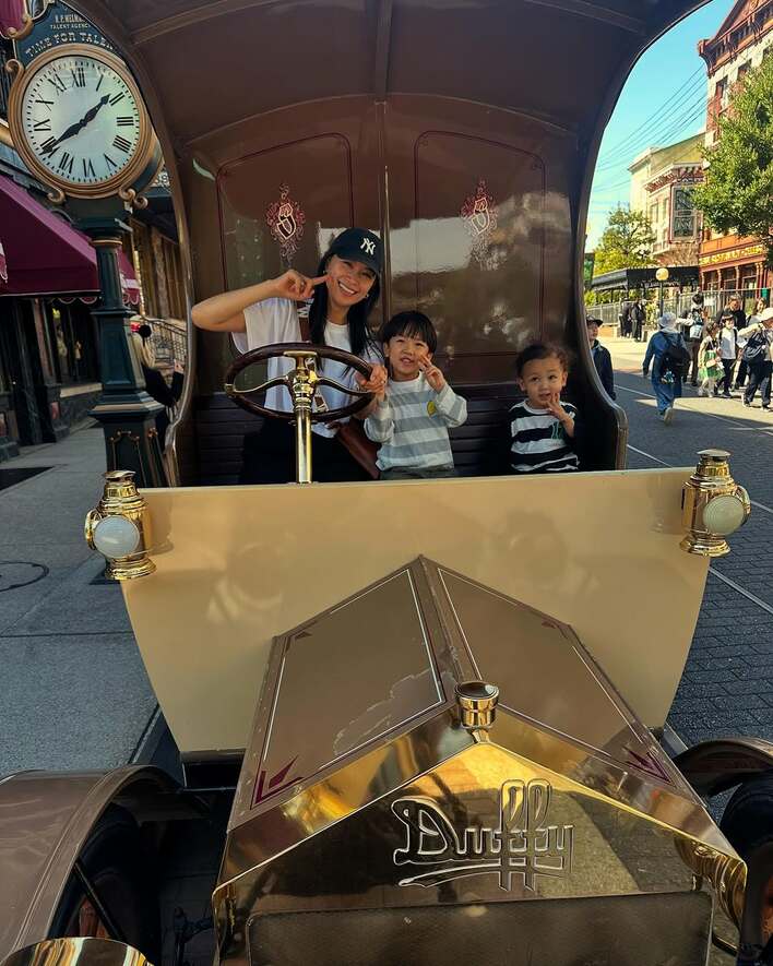 投稿された写真には、ディズニーシーの絶景をバックにゴンドラに乗った笑顔の高橋さん。その横には夫の卜部さん、そして卜部さんの膝の上には、ピースサインをする長男に、高橋さんの前にはサングラスをして楽しそうな次男の姿が映し出されています!