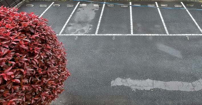 写真に写っているだけでも車7台は停められるほどの駐車場。改修前は、ところどころにヒビやヘコみが入っていることが分かります。