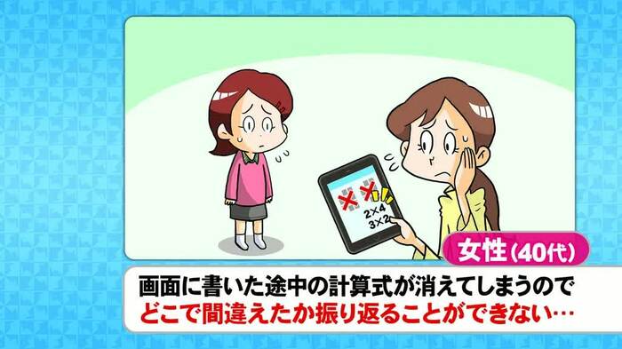 「小4の子供がタブレットで算数の勉強をしているのだが、途中式が消えてしまうのでどこを間違えているのかわからない」という40代女性のエピソードでは、中学受験カウンセラーの安浪京子氏が「デジタル学習でもノートは使うべき」と主張した。