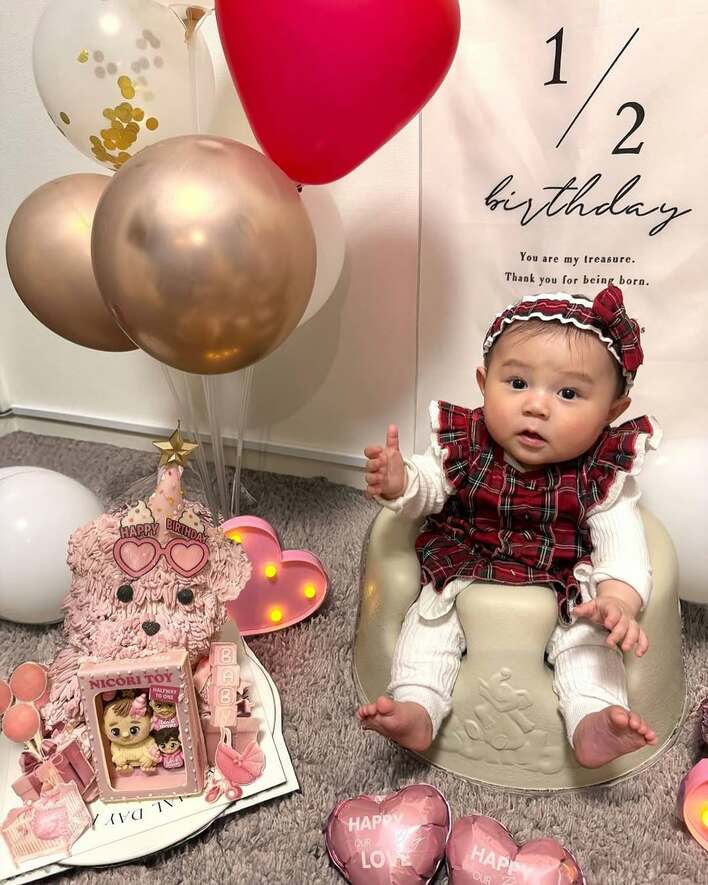 日頃から愛娘の育児に奮闘する姿を公開しており、今回の投稿では「にこちゃんハーフバースデー あっという間に半年 笑ったり泣いたり怒ったり驚いたり、、最近は色んな表情を見せてくれるようになってきました 」と愛娘の成長を報告しました。