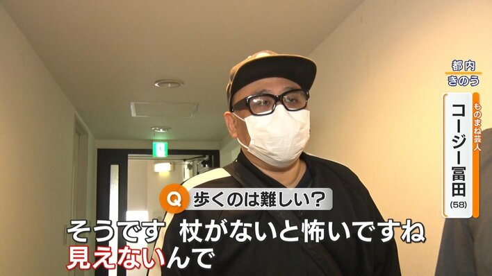 タモリさんや笑福亭鶴瓶さんなどのものまねで知られる、ものまね芸人のコージー冨田さん(58)が、「1型糖尿病」の影響で、6年ほど前から「ほとんど目が見えていない」ことを公表しました。