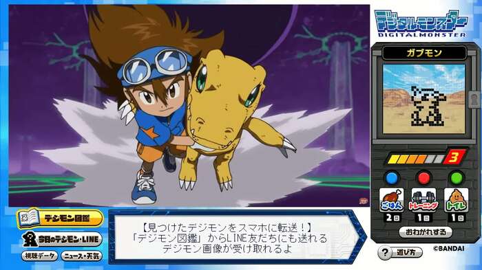 また、番組では、今年4月の番組開始当時よりデータ放送にてデジモン育成ゲーム「デジタルモンスター」を実施しており、デジモンファンに人気のコンテンツとなっている。