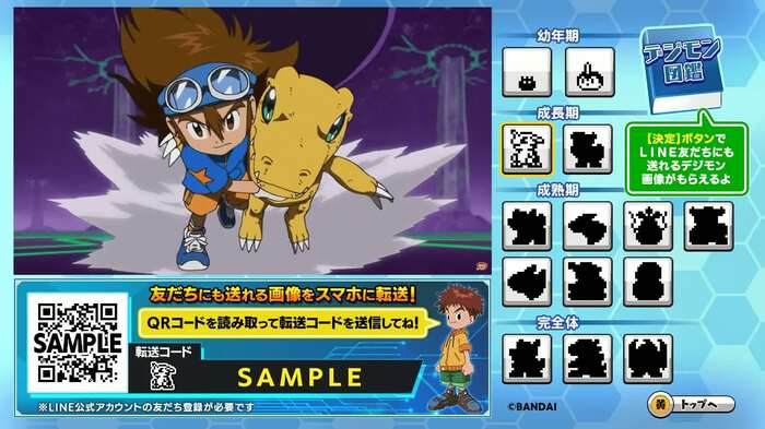 データ放送上に表示されるQRコードを読み取ることで、自身のスマホに育てたデジモンを転送することが可能だ。転送されたデジモンはLINEトークなどで、友達に送ることもでき、自分が育てたデジモンを、画像やスタンプとして活用することができる仕様になっている。