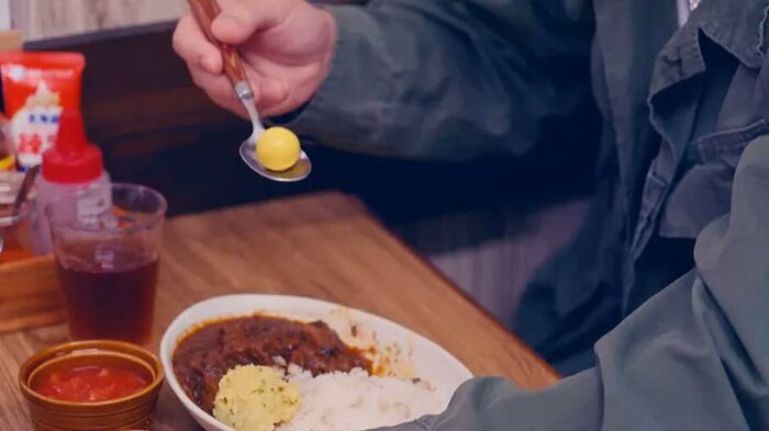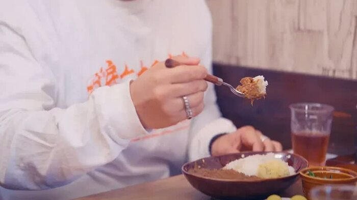 櫻井:良いスパイスを程よく効かせてあって絶妙な配合ですね。クローブやブラックペッパーの香りが後からぶわっと追い上げてくる感じです。ベースは酸味もしっかり入っているので、それが程よく旨みに昇華しています。「本当にこれ、元大道具さんが作ったカレーなんですか?」って思うくらい、バッチリうまいですね。