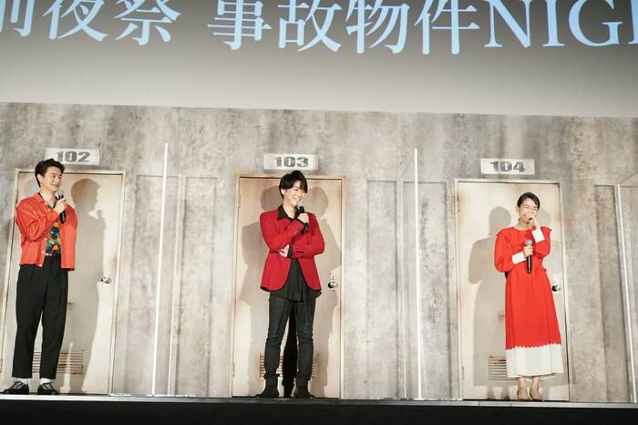 真っ暗な会場の舞台に設置された“事故物件”の扉を開け、登場した登壇者たち。本作ならではのスペシャルな演出に、イベント開始から会場は熱気に包まれた。