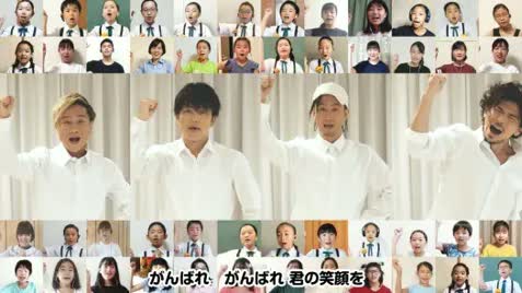プロジェクトに賛同した全国の子どもたち約300人が、自宅や学校などそれぞれの場所で「がんばれ!がんばれ!」の曲を歌って踊った動画をアップロードし、その映像を合わせて1本の合唱動画に仕上げられた動画は、まさに壮観。