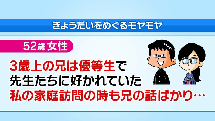 「3歳上の兄が優等生で、家庭訪問でも兄の話ばかりだった」という、52歳女性の複雑な思い出も登場しました。