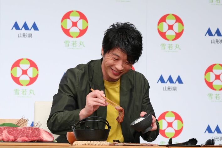 イメージキャラクターを務めて、今年で4年目となる田中の前には、炊き立ての雪若丸と漬物、山形牛のステーキ、芋煮が用意され、実食することに。田中は漬物をつまみながら「CM撮影のときに基本、お米をお茶碗で4〜6杯くらいは食べるんです。お米だけでもおいしいんですけど、漬物とかも間に入れさせてもらうんですよ。そうすると、本当にめちゃくちゃ食べられる」と撮影を振り返った。