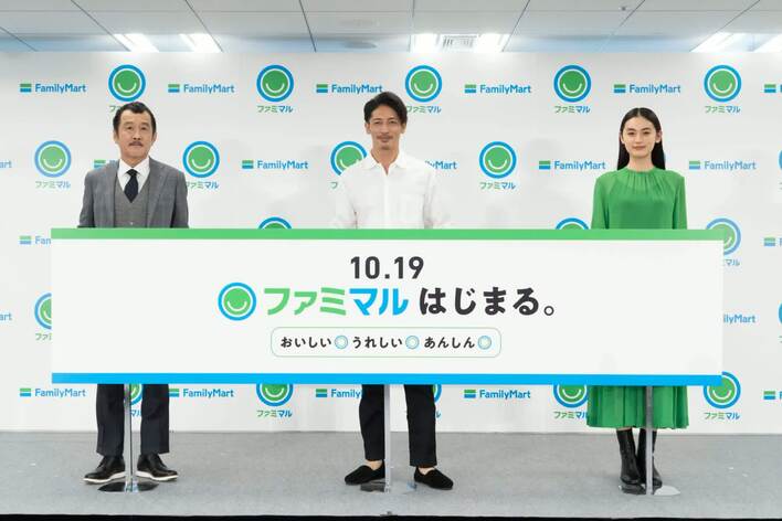 10月18日(月)、「ファミリーマート 新プライベートブランド『ファミマル』発表会」が行われ、同社のCMキャラクターを務める玉木宏、吉田鋼太郎、八木莉可子が登壇した。