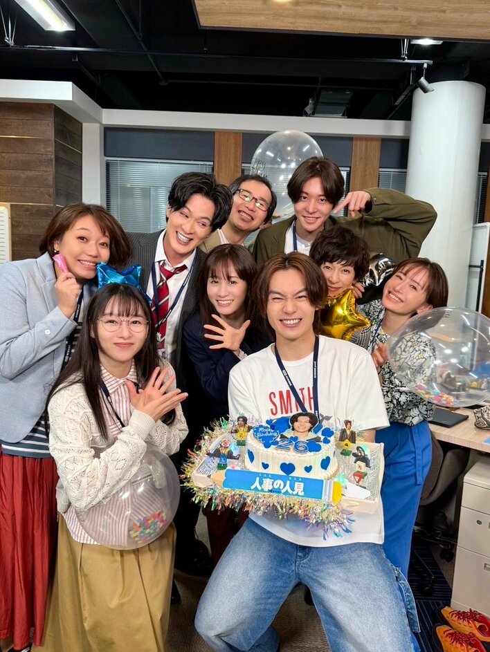 「人事部メンバー集合でお祝いできました 座長、26歳おめでとうございます!!!」というコメントとともに公開された写真では、豪華なケーキを持った松田さんを中心に、前田敦子さん、桜井日奈子さん、新納慎也さん、ヘイテツさん、松本まりかさん、鈴木保奈美さん、津和野諒さん、前田友里子さんが笑顔を見せています。