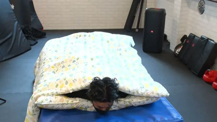 山下刑事:おい!すげぇ格好だな。踏み込むぞ。動くな!三面刑事だ!お前か?バク転をしながら布団を被る曲芸を披露してるのは。