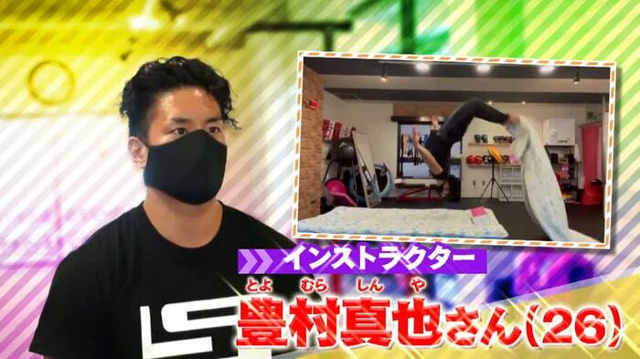 豊村さんは現在、ジムではキックボクササイズを教えているが、バク転を習えるアクロバットコースもあり、4人の生徒に指導している。