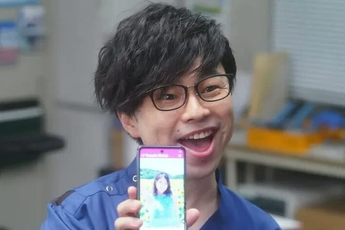 だけど、どれどれ?…って、第1話、見返したら、軒下(浜野謙太)、ちゃんと、マッチングアプリのプロフィールに、“青いスクラブ(白衣)”着てるーーー!!“黒ぶちメガネ”ד青いスクラブ”とまでくれば、確かにそれは、軒下である可能性大!!加えて、前日にデートの待ち合わせまでしてるんだから、どこらへんに住んでるかまではわかってる?てか、マッチングアプリなわけだから、住所とかまでわかってたりして?(マッチングアプリ、よく知りません…)そうすっと、軒下率はさらに上がってくるわけでしょ?で、おそらくあの軒下のことだから、プロフィール画像にわざわざスクラブ姿を載っけてる=俺の一番カッコいい姿ってことで、職業欄に“放射線技師”とか書いてるよね!?“黒ぶちメガネ”ד青いスクラブ”ד放射線技師”って、それはつまり、紛れもなく、軒下やないかーーーい!!