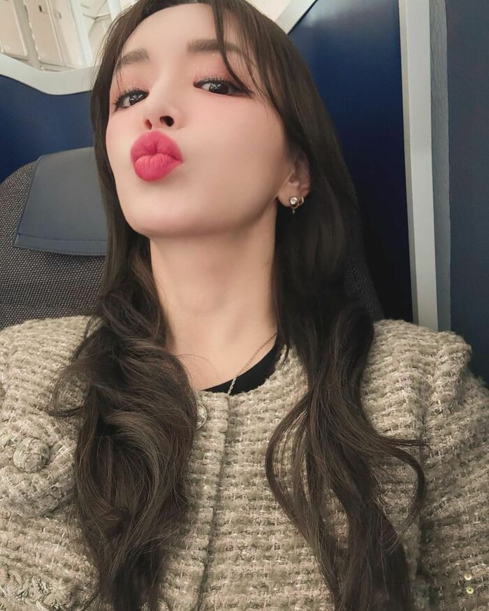 髪の毛をふんわりと巻き、口をすぼめる浜崎さんの姿も。