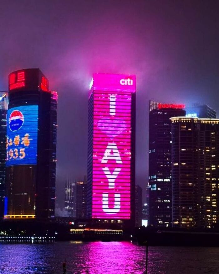 さらに、上海の高層ビルの壁一面に「I♡AYU」とピンクと白でライトアップされる様子も。
