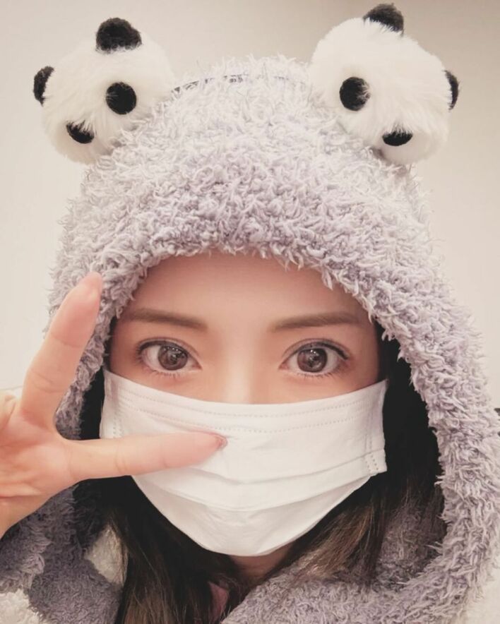 白マスクをして、パンダのカチューシャをつけた浜崎さんや・・・。