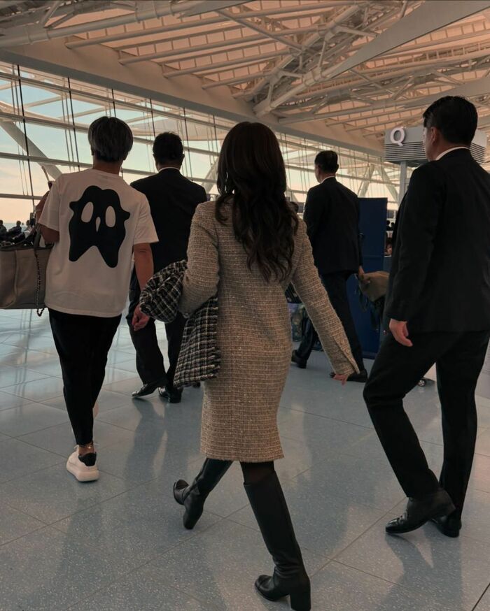 他にも空港で、黒いスーツの男性たちに囲まれながら浜崎さんが歩く後ろ姿が公開されています。