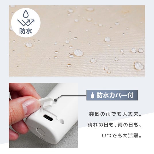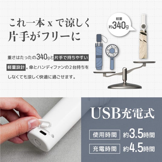 本製品は、扇風機を搭載した折りたたみ傘です。