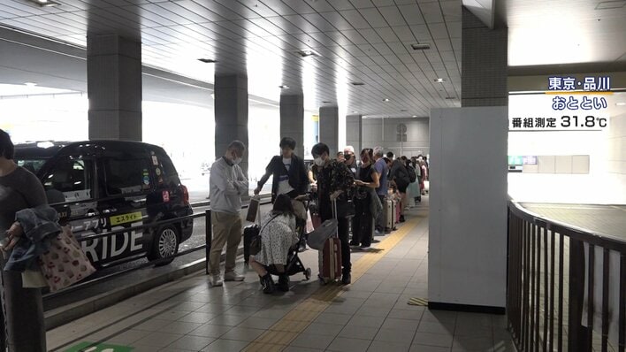 タクシー乗り場には、30人以上が並び、長蛇の列が発生していました。